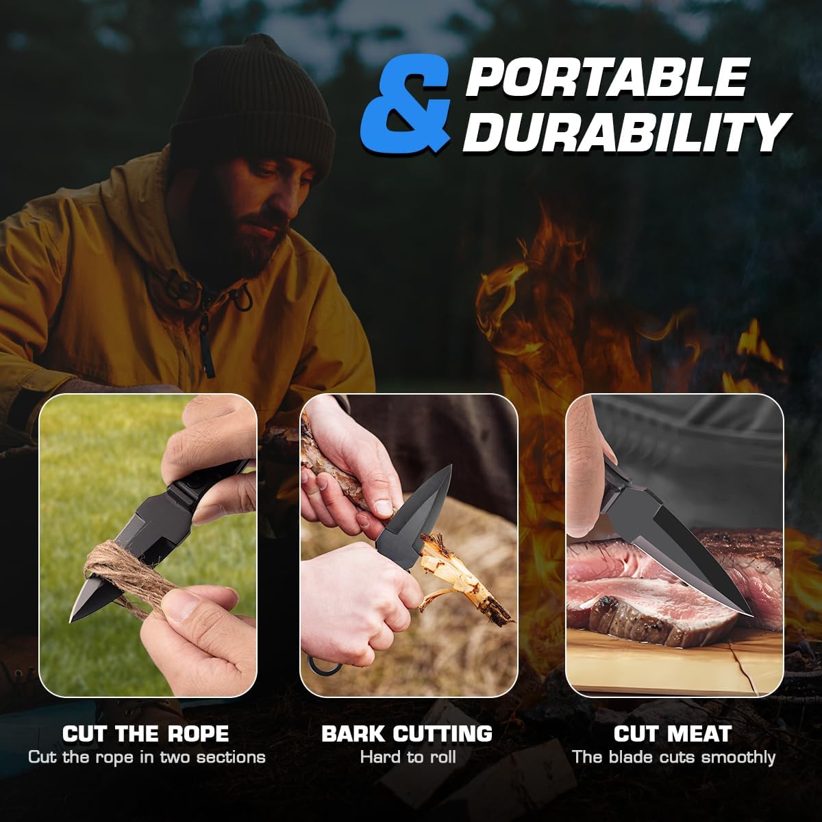 DURABLE BLADES - The camping fixed-blade knives use 440C stainless steel blades, a single-edge spear point design with perfect cutting performance. These blades were treated with anti-corrosion, Black Oxide Coated Blades and Stonewash Blades are available, combining beauty and practicality