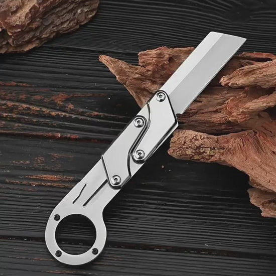 Silvery Stainless Steel Folding Knife, Multi-Functional Pocket Blade with Creative Transformation , Perfect for Outdoor Camping, Daily Tasks, Parcel Opening, Emergency Cutting - Ideal Gift for Men